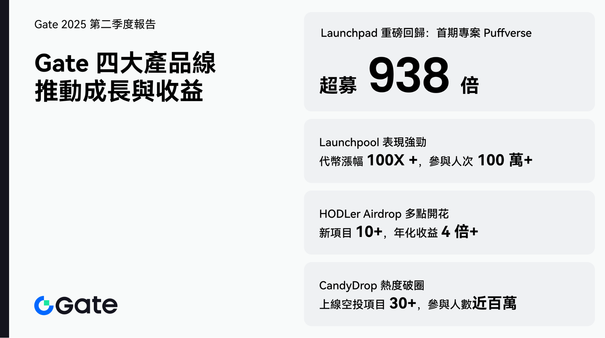 2025 年第二季度,Gate 現貨業務表現卓越,多個產品線持續推動用戶活躍與收益提升。