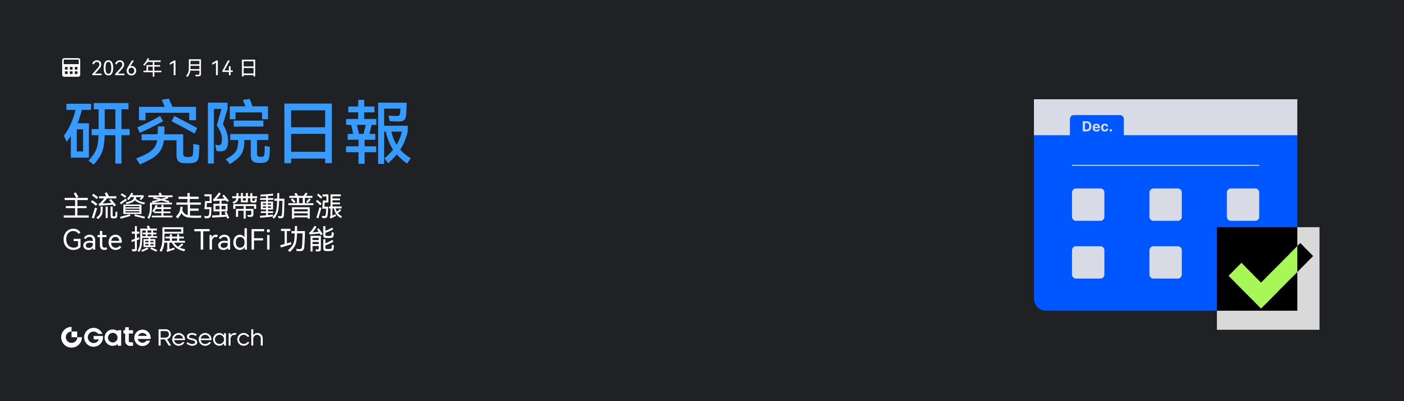 探索本日詳情 → Gate 研究院:主流資產走強帶動普漲|Gate 拓展 TradFi 功能