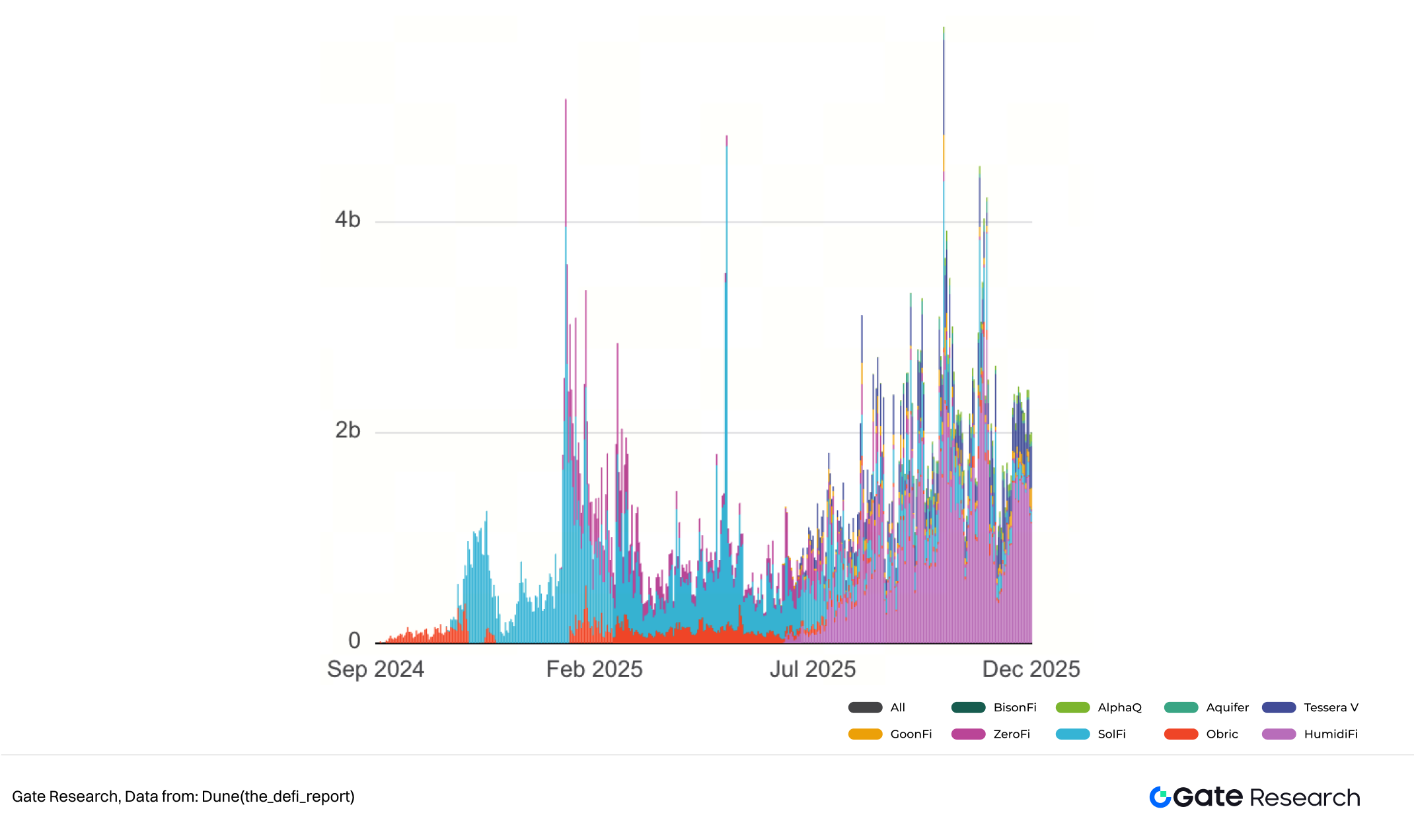 自 6 月下旬誕生以來,HumidiFi 幾個月內即成為 Prop AMM 及 Solana 最大 DEX,也是首個累積交易量破 1,000 億美元的 Prop AMM。現 HumidiFi 日交易量基本在 10 億美元以上,Prop AMM 市占逾 60%。