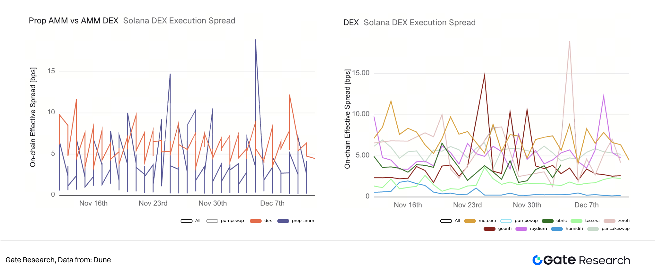 圖四:Solana DEX: Prop AMM vs 傳統 AMM(SOL-Stablecoins 交易對(右圖))