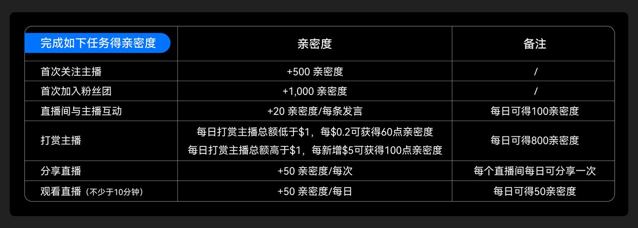活动期间完成任意 “亲密度任务” 1次 即可参与专属抽奖,任务完成次数越多,中奖几乎越大,抽 20位用户各奖励$20