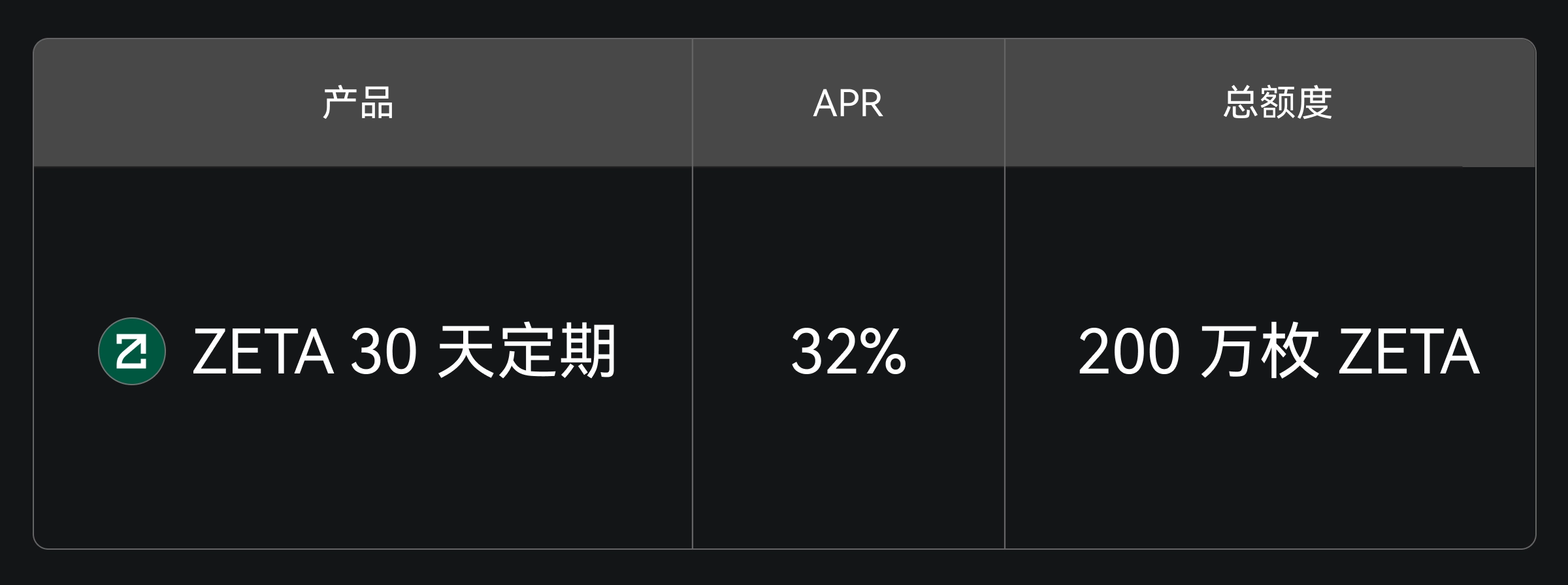 Gate 余币宝现已上线 ZETA 30 天定期理财,年化收益 32%,总额度 200 万枚 ZETA,限量发售,先到先得。