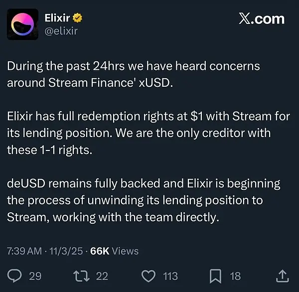由于没有向这些 DeFi 用户披露这一情况,许多用户现在对 Stream 和 Elixir 都极为愤怒:不仅损失金钱,而且损失被社会化,以确保来自华尔街背景的富有的美国人保持利润。