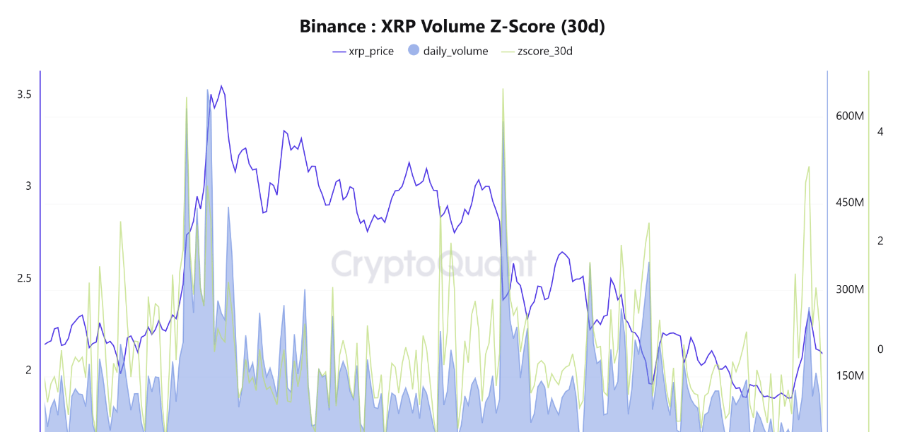 XRP 在 $2 上方盘整,成交量 Z-Score 指示市场平静